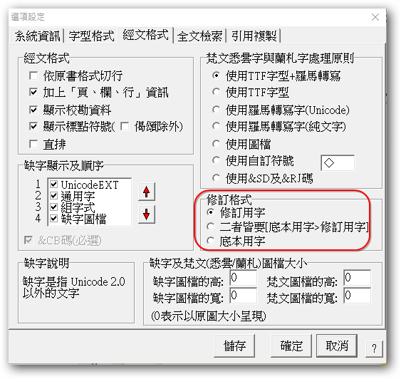 作為一個不想見到修訂用字的讀者,當然是設定「底本用字」,而不會去選「修訂用字」的設訂。