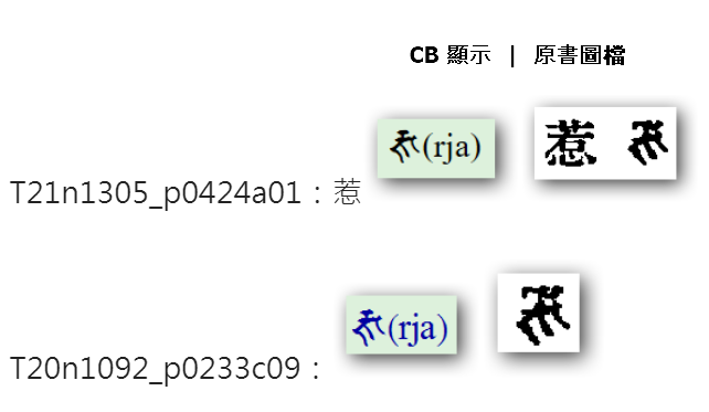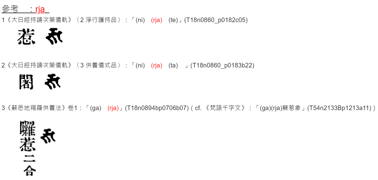 經查證,CBETA 誤置悉曇文的羅馬轉寫作「rja」。今依原書圖檔改正本題( T21n1305_p0424a01)及《不空羂索神變真言經》(T20n1092_p0233c09)一筆作「ñja」。